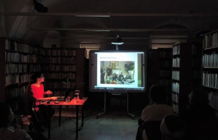 Po zapoznaniu uczestników wykładu z tematem, dr Katarzyna Weinper poruszyła współczesne transformacje i nawiązania do tematu conversation pieces w sztuce filmowej. Echa tego typu przedstawień można odnaleźć w takich serialach jak: "Dynastia", "Moda na sukces", "Sukcesja", "Pamiętniki wampirów", gdzie całe klany rodzinne, ujęte w tej samej przestrzeni, ilustrują reminiscencje portretów rodzinnych.