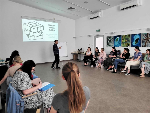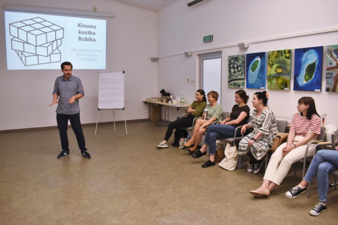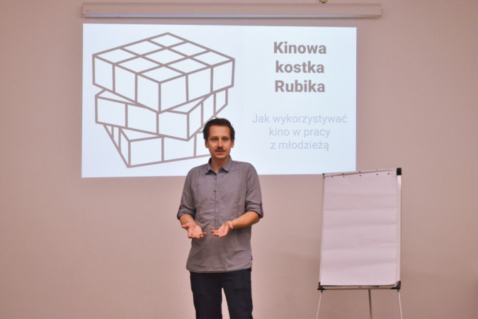 Szkolenie "Kinowa kostka Rubika, czyli jak wykorzystywać kino w pracy z młodzieżą" odbyło się w ramach bloku filmowego. Poprowadził je Maciej Misztal - pomysłodawca i dyrektor Lubelskiego Festiwalu Filmowego, absolwent organizacji produkcji filmowej i telewizyjnej w Szkole Filmowej im. Krzysztofa Kieślowskiego Uniwersytetu Śląskiego w Katowicach oraz kulturoznawstwa na Uniwersytecie Kardynała Stefana Wyszyńskiego w Warszawie, kurator pokazów filmowych na wielu festiwalach.