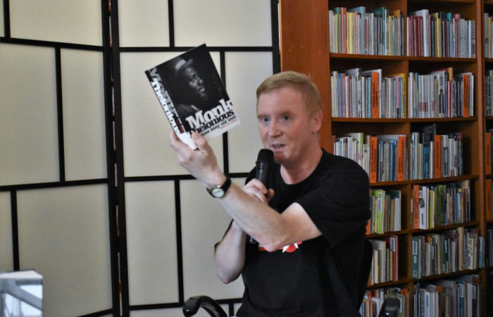 Podczas spotkania Piotr Jagielski opowiedział m.in. jak zaczęła się jego przygoda z jazzem. Pierwszego olśnienia doznał za sprawą kanonicznego dla jazzu album Kind of Blue Milesa Davisa. Potem przyszedł free jazz i inne gatunki. Opowiadał też, że materiały do książki zbierał przez 7 lat. Oprócz tekstów publikowanych w internecie były to rozmowy telefoniczne, mailowe czy bezpośrednio po koncertach, które przeprowadził z bohaterami swojej opowieści, żywymi legendami jazzu: Wyntonem Marsalisem, Lee Koonitzem, Waynem Shorterem (niestety niedawno zmarłym), Sonnym Rollinsem, Peterem Brotzmanem (zmarłym 23 czerwca), Kenem Vandermarkiem, Wadada Leo Smithem czy Roscoe Mitchelem. Jagielski pisze zarówno o postaciach z jazzowego panteonu, jak i tych zapomnianych, ale wartych uwagi i przypomnienia, jak chociażby saksofonista Kalaparusha Maurice McIntyre i kontrabasista Henry Grimes, których losy stanowią pewnego rodzaju metaforę życia jazzmana. Te mini-reportaże są opowiadaniami przede wszystkim o Czarnych muzykach tworzących w trudnych czasach segregacji rasowej, nierówności społecznych i pozbawionych większości praw obywatelskich. Jednocześnie relacje skrzą się dowcipem, mnóstwem anegdot i czymś, co można nazwać czułą narracją wobec bohaterów książki.