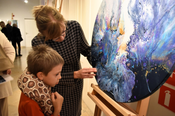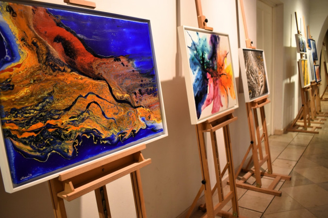 Prezentowane Galerii OKNA obrazy to abstrakcje wykonane w technice pouringu, czyli malowania płynnymi farbami akrylowymi zmieszanych z substancjami, które - stosowane w różnych konfiguracjach i z użyciem różnych środków - dają niepowtarzalne efekty.