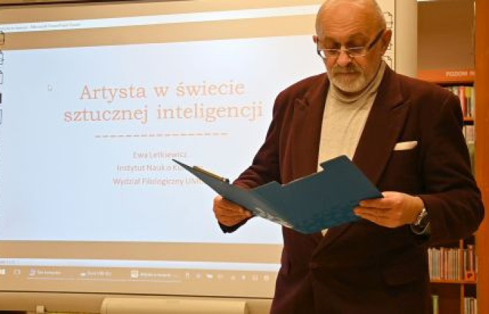 W ubiegłą środę w Filii nr 2 MBP odbył się kolejny wykład w ramach XV edycji otwartych wykładów z historii sztuki 2023/2024. Pani prof. Ewa Letkiewicz z Katedry Kultury Audiowizualnej i Nauk o Sztuce UMCS wygłosiła prelekcję pod tytułem „Artysta w świecie sztucznej inteligencji”. Nasza gościni postawiła publiczności naczelne pytanie brzmiące: jak będzie wyglądać przyszłość sztuki i artystów w kontekście gwałtownego rozwoju sztucznej inteligencji?