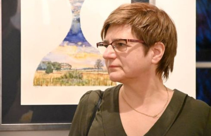 Oprócz akwareli na wystawę składają się pejzaże zamknięte w charakterystycznym kształcie klepsydry. Ten cykl stanowi symbol upływającego czasu, koresponduje również z obrazami pejzaży i widokami miasta uwiecznionych o różnych porach dnia i roku. Myślę, że każdy z państwa znajdzie na tej wystawie coś, przy czym zatrzyma się na dłużej