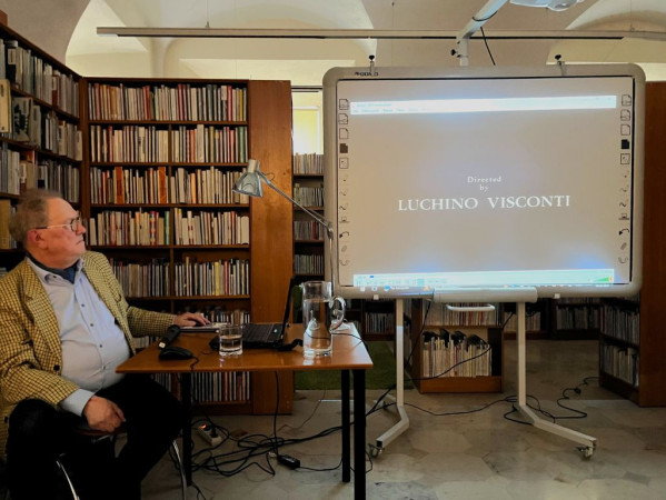 Poza licznymi nawiązaniami do muzyki klasycznej i operowej Visconti upodobał sobie konteksty literackie. Najistotniejszym dla niego pisarzem był Thomas Mann, niemiecki prozaik i eseista, laureat literackiej Nagrody Nobla. Dla Viscontiego pierwiastek niemiecki był nieodzownym uzupełnieniem pierwiastka włoskiego. Najbardziej znany i ceniony obraz Viscontiego – „Śmierć w Wenecji” (1971) – powstał właśnie na kanwie noweli Manna o tym samym tytule. Podczas wykładu słuchacze i słuchaczki mieli okazję obejrzeć pierwszą scenę filmu, w której pojawia się libretto z V symfonii Gustava Mahlera – muzyka ta, jak powiedział dr Münch, z jednej strony przynosi uspokojenie, z drugiej – symbolizuje kres dotychczasowego świata. Kontekstem historycznym tej sceny jest czas tuż przed wybuchem I wojny światowej; ukazuje ona sytuację, w jakiej znalazła się współczesna kultura. Dr Münch opowiedział również o dwóch pozostałych filmach Viscontiego z tak zwanego niemieckiego tryptyku – „Zmierzchu bogów” (1969) i „Ludwigu” (1972).