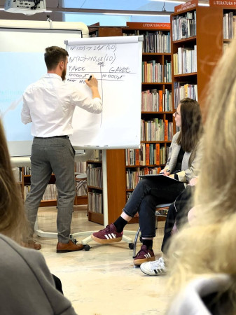 24 kwietnia 2024 roku w Filii nr 2 Miejskiej Biblioteki Publicznej w Lublinie odbyło się drugie spotkanie edukacyjne dla młodzieży w ramach projektu „Pieniądze bez tabu” dofinansowanego przez Fundację Empiria i Wiedza w programie „Kierunek Sukces” - II Edycja. Spotkanie „Jak zostać bogatym. Od oszczędzania do inwestowania” poprowadził Kamil Paszko, student Zarządzania na Uniwersytecie Marii Curie Skłodowskiej w Lublinie, członek Koła Naukowego Ekonomistów oraz Koła Naukowego Zarządzania i Marketingu.