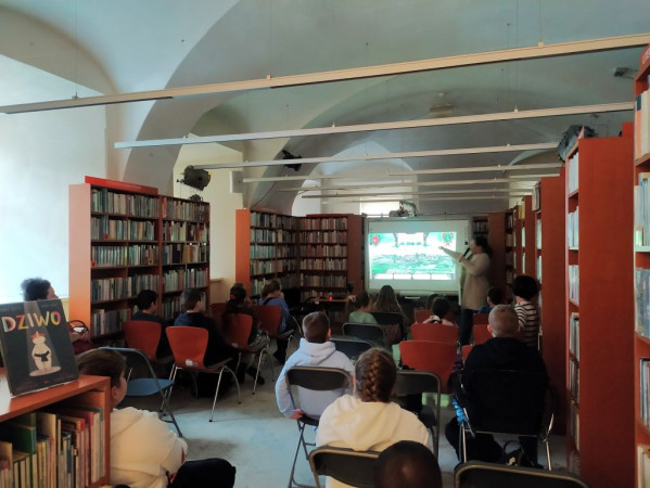 Dla uczestników bibliotecznych ferii zimowych zorganizowałyśmy lekcję podzieloną na dwie części. Najpierw dzieci poznały w skrócie najważniejsze wydarzenia z historii Lublina, z zabytkami i legendami w tle. Bardzo zainteresowały się miejscami związanymi z Janem Kochanowskim w Lublinie i na pewno, gdy nadejdą ciepłe dni, przyjadą do nas na spacery biblioteczne. Następnie dzieci miały okazję poznać instytucję Miejskiej Biblioteki Publicznej w Lublinie dzięki bibliotecznej lekcji wprowadzającej. Opowiedziałyśmy im o działach bibliotecznych i działaniach naszej Filii, oprowadziłyśmy po wypożyczalni i czytelni oraz zaprezentowałyśmy system wypożyczania książek. Wspólnie z uczniami porozmawialiśmy też o korzyściach płynących z korzystania z bibliotek i czytania. Dzieci wykazały w rozmowie z nami dużą aktywność, co sprawiło nam wiele radości! Uczestnicy ferii bibliotecznych ze Zwolenia otrzymali komiks Tomasza Wilczkiewicza „Legenda o czarciej łapie”, wydany przez Urząd Miasta Lublin, a bibliotekarze książkę "Szlaki Lublina".