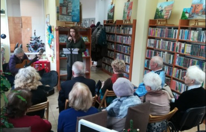 Wraz z Seniorami z CUS miałyśmy dziś ogromną przyjemność wysłuchać koncertu kolęd i pastorałek w wykonaniu Justyny Prokop, naszej koleżanki pracującej w Filii nr 10 oraz akompaniującego jej na gitarze Wiesława Pawłowskiego, lubelskiego muzyka, poetę, kompozytora.