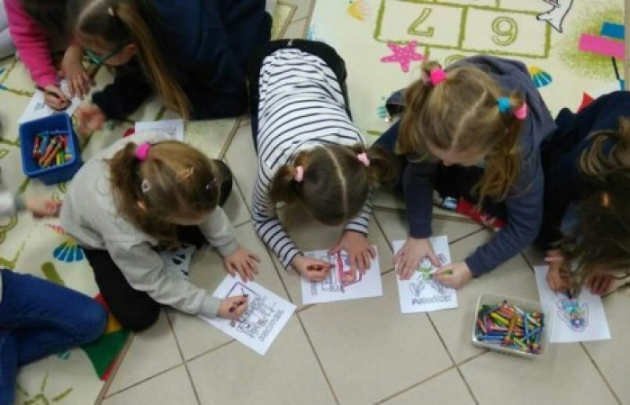 Przyszli uczniowie poznali także dawne zawody, takie jak kołodziej,garncarz czy prządka. Nie zabrakło dobrej zabawy w kalambury. Na koniec spotkania wszyscy chętnie zabrali się za kolorowanie postaci m.in. fryzjerki, podróżniczki, kucharza czy taksówkarza.