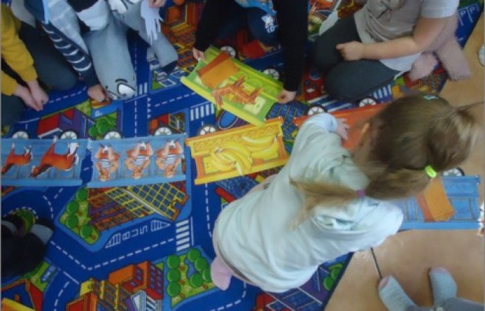 Rozmawialiśmy o tym co to jest język i do czego jest nam potrzebny? Z najmłodszymi na podstawie książki Marty Galewskiej–Kustry ćwiczyliśmy aparat mowy. Ze starszymi grupami na podstawie wierszy Brzechwy i Tuwima wykonaliśmy ćwiczenia logopedyczne.