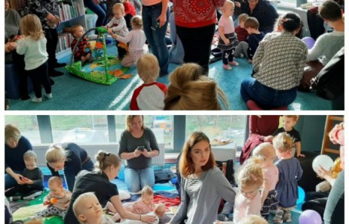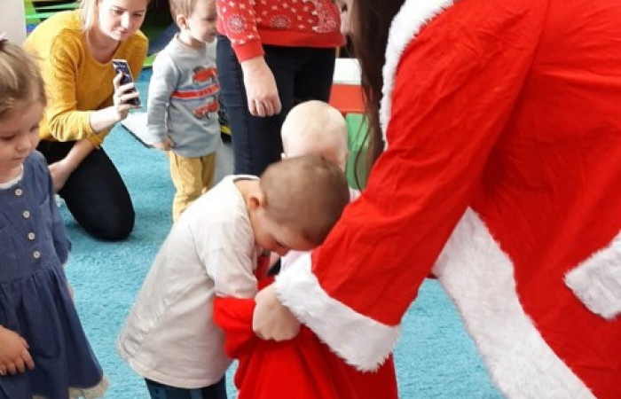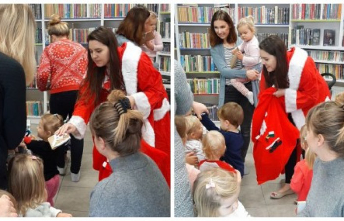 Dzięki tym wszystkim elementom, maluchy nie tylko miały okazję do doskonalenia umiejętności sensorycznych, ale także do poznawania przestrzeni wspólnie z rodzicem, a co za tym idzie bycia blisko i umacniania więzi. Przed zajęciami, bibliotekę odwiedził Święty Mikołaj, ale tłumacząc, że bardzo się śpieszy, zostawił dla maluszków drobne upominki. Bardzo dziękujemy za udział w zajęciach i zapraszamy na ostatnie już w tym roku zajęcia Szeptankowe. Będzie bardzo świątecznie.