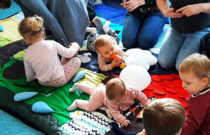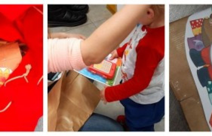 Z okazji nadchodzących Mikołajek, Szeptanki w Filii nr 38 przybrały trochę inny charakter. Na maluchy czekało kilka sensorycznych aktywności, m. in. mata sensoryczna, krosno do przeplatania wstążek czy ścieżka sensoryczna.