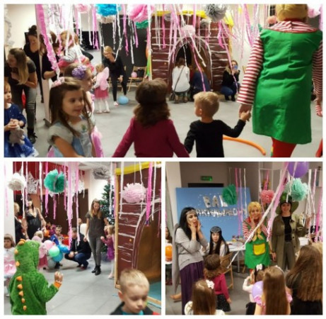 Uczestnicy korzystali z licznych atrakcji: balonowego basenu, zimowej chatki, malowania twarzy. W trakcie imprezy Pippi Pończoszanka oraz Włóczykij porwały maluchy w szał zabawy z chustą Klanzy. W kąciku plastycznym dzieci przygotowywały własne motyle i biedronkowe skrzydła, oraz kolorowały rysunki z postaciami z bajek. Spotkały także bibliotecznego Smoka, który poprowadził pociąg po najciekawszych zakątkach naszej filii. Serdecznie dziękujemy wszystkim za obecność - do zobaczenia za rok!