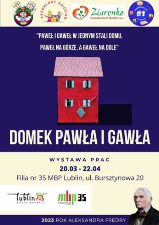 Filia nr 35 w Roku Aleksandra Fredry prezentuje domki Pawła i Gawła. Za przygotowanie tych wspaniałych prac z całego serca dziękujemy dzieciom i ich rodzinom z Przedszkola "Ziarenko", Przedszkola "Pozwalamy Dzieciom", Przedszkola nr 63, Przedszkola nr 81 oraz Bajkowiczom z "Bajkowych Poranków".