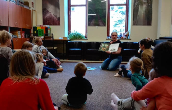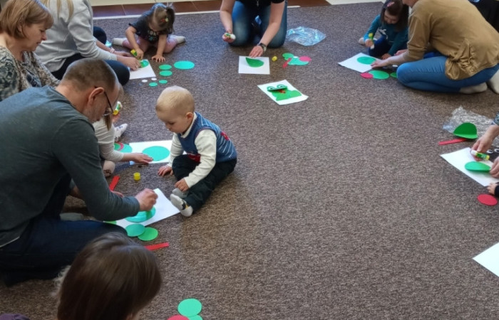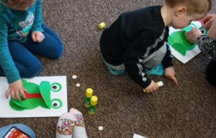 Tym razem dzieci i ich opiekunowie uczestniczyli w Bajkowych Poranki w Filii nr 35 na zielono i kumkająco. Uczestnicy poznawali książeczki i zabawy plastyczne poświęcone żabom.