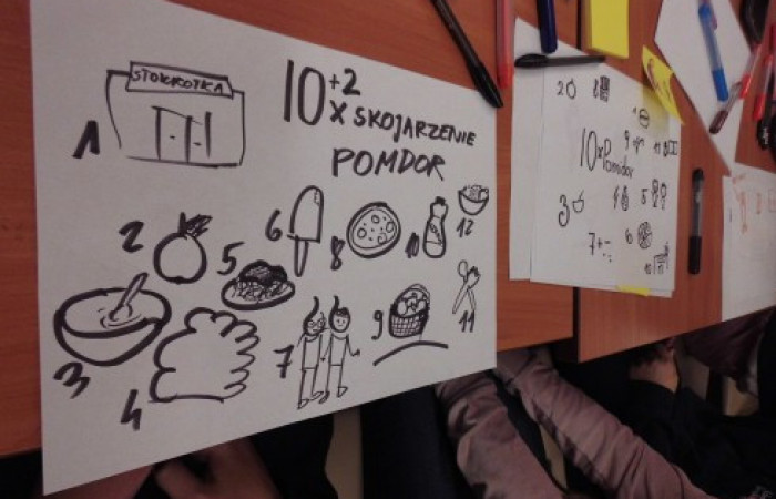 Pani Łucja Mazurek z Fundacji InsideOut poprowadziła w Filii nr 35 warsztaty dla młodzieży. Podczas cyklu zajęć nastoletni czytelnicy uczyli się, jak robić kreatywne notatki pomagające w nauce.