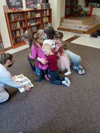 Za siedmioma górami, za siedmioma lasami była Bursztynowa Biblioteka, do której przyszły baaardzo grzeczne dzieci z przedszkola "Ziarenko". Spotkanie wypełniło czytanie baśni, wyklejanie rybek spełniających życzenia i przytulanie, bo w bajkach wszyscy żyją długo i szczęśliwie!!!