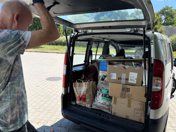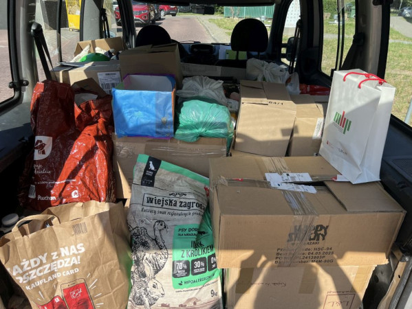 Po przywiezieniu darów z poszczególnych placówek samochód pełen przysmaków i zabawek wyruszył do siedziby schroniska przy ul. Metalurgicznej 5.