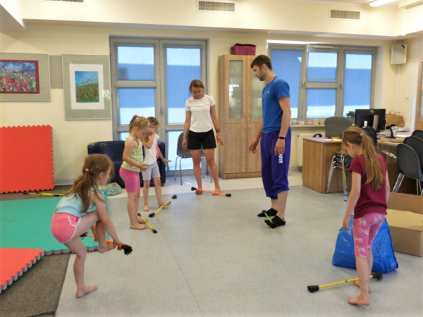 26 czerwca w Filii 36 zakończyła się kolejna edycja warsztatów cyrkowych prowadzonych przez Fundację Sztukmistrze. W czasie ostatnich zajęć uczestniczki wraz z instruktorami przygotowały wyjątkowy program artystyczny i zaprezentowały go widowni, na której zasiedli rodzice.