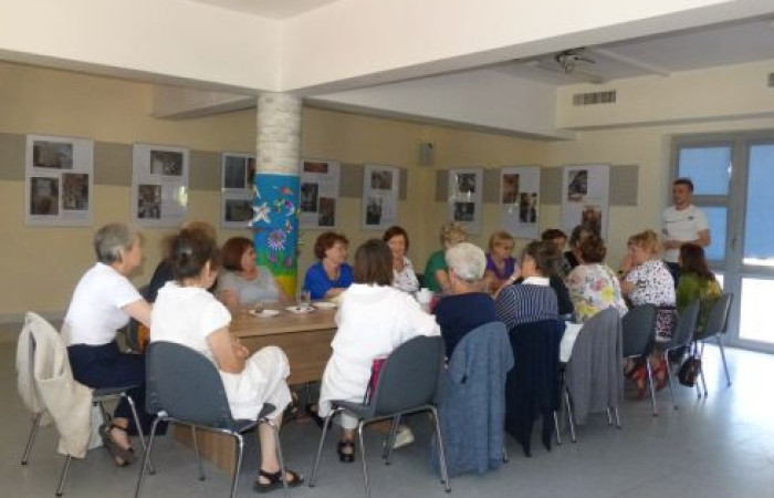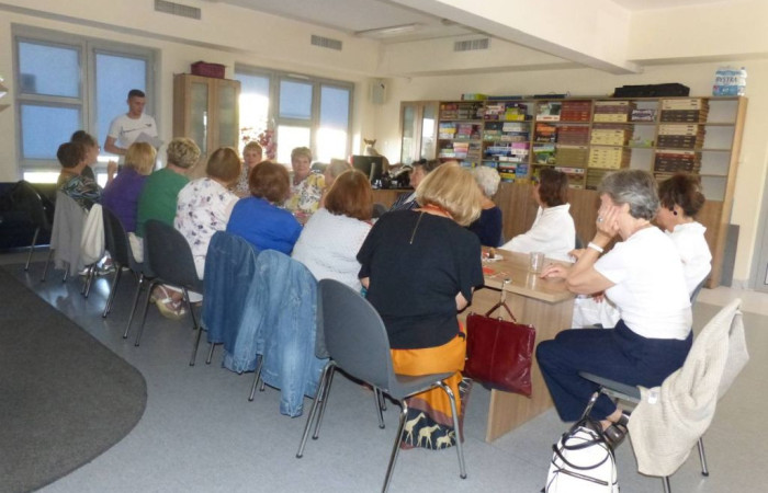 Seniorzy podczas spotkania w bibliotece