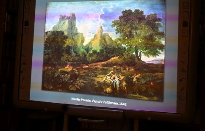 W trakcie wykładu Prelegent poddał dokładnej analizie formy i treści obrazy pejzażystów min.: Jana Wijnantsa, Jana Steena, Claude Lorraina, Nicolasa Poussina, Richarda Wilsona i Thomasa Gainsborough, w którego krajobrazach pojawia się problem moralności. Widok przedstawiał rannych chłopów angielskich w kostiumach arkadyjskich. W prezentowanych dziełach można było nadal dostrzec arkadyjskie schematy z ludźmi żyjącymi w skrajnej nędzy, ukazanymi jedynie za mgłą idealizacji.