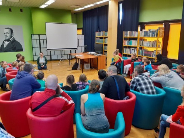 Najpierw obejrzeliśmy historię zakochanych piesków Daisy i Trumpa. Po filmie przyszedł czas na wyjątkowe spotkanie z Agatą, Olgą oraz psem rasy bedlington terrier - Blu. Dziewczyny w ramach inicjatywy My i Psy podejmują liczne działania na rzecz podniesienia poziomu świadomości i edukacji kynologicznej. Podczas sobotniego spotkania dzieci zastanawiały się czy pies w domu to przyjemność czy obowiązek oraz jak zachować się w obecności czworonoga. Chętni mogli również pogłaskać Blu i przekonać się, że jest bardzo mięciutki.