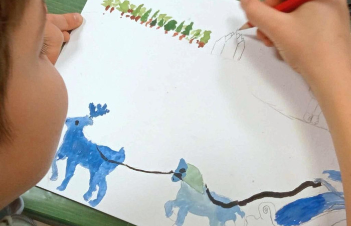 Zadaniem uczestników było namalowanie ilustracji do baśni Hansa Christiana Andersena ,,Królowa Śniegu” w technice akwareli z użyciem specjalnego papieru, tuszu, cienkopisów i wosku ze świecy. Zadanie nie było łatwe, ale przy poradach, miłej atmosferze i ogromnej wyobraźni uczniów okazało się przede wszystkim świetną zabawą kolorami, płynącą farbą i swobodnym rysunkiem. Dzieci z dumą prezentowały swoje prace, na których doskonale udało im się stworzyć klimat baśni Andersena, gdzie lodowate zło walczy z ciepłem ludzkiego serca.