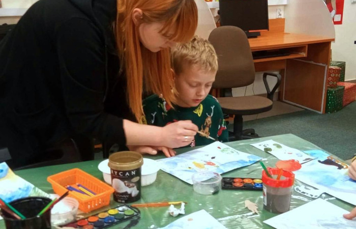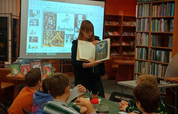 Pod koniec grudnia miała miejsce kolejna odsłona warsztatów ilustracji, na których naszymi gośćmi byli uczniowie klasy III Szkoły Podstawowej im. Bolesława Chrobrego. Tym razem prowadziła je Karolina Błach - bibliotekarka i absolwentka malarstwa Wydziału Artystycznego UMCS w Lublinie.