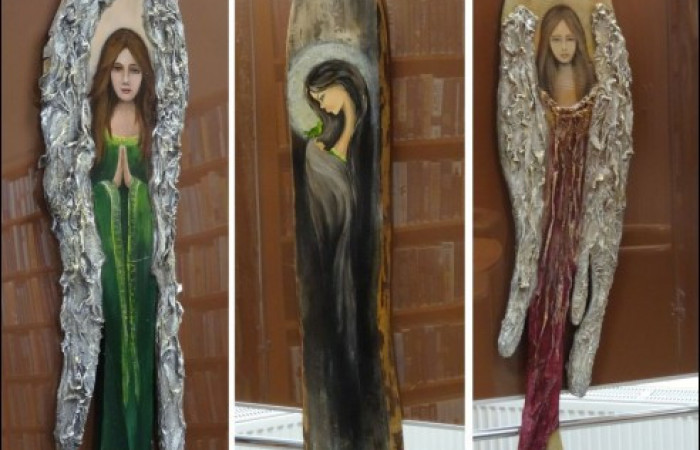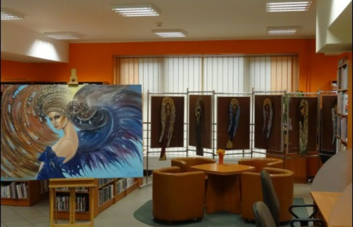 Z początkiem grudnia w Filii nr 34 zagościła wystawa prac Marii Jeżowskiej „Moje Anioły”. Autorka jest Lublinianką i mieszka na Węglinie. Pani Maria jest absolwentką Liceum Plastycznego im. C.K. Norwida. Mimo niezwiązanej z twórczością artystyczną pracy zawodowej po wielu latach powróciła do swojej pasji malarskiej, którą rozwija pod okiem artysty plastyka Elizy Dudek-Wójcickiej w Akademii Rysunku i Malarstwa Canaletto Art.