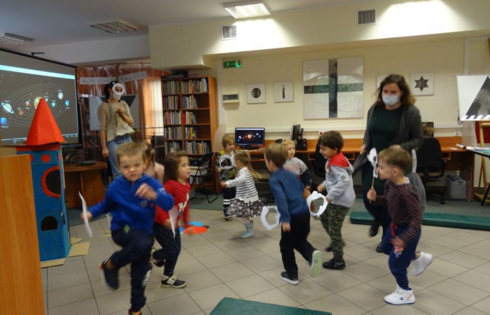 Podczas czterech spotkań z dziećmi z przedszkola Król Maciuś Pierwszy podróżowaliśmy Drogą Mleczną. Przedszkolaki poznały układ słoneczny i jego planety, zobaczyły jak wygląda skafander kosmiczny i poznały postać Mieczysława Bekkera twórcy księżycowego łazika.