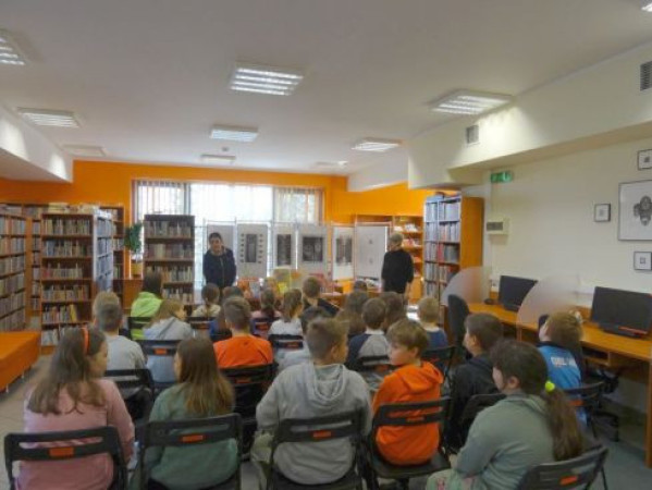 Dokonała jej instruktor Miejskiej Biblioteki Publicznej w Lublinie pani Anna Ostęp. Spośród ogromnej ilości książek obecnych na rynku wydawniczym wybrała książki nagrodzone, wyróżnione i polecane ze względu na zawartość treściową i interesującą szatę graficzną. Pani Anna Ostęp snując opowieść o książkach zabrała dzieci w wielowymiarową podróż. Wędrówka rozpoczęła się od „Atlasu podróżników. Historii wypraw na krańce świata” autorstwa Isabel Minhós Martins. Następnie przenieśliśmy się na teren wykopalisk archeologicznych po których oprowadziła nas Marta Guzowska w swojej książce „Archeologia. Mumie, złoto i stare skorupy”. Dzięki Adzie, bohaterce książki G. Bąkiewicz „Ada i tajemnica Galla Anonima” dzieci spotkały Bolesława Krzywoustego. W kolejnych prezentowanych książkach uczniowie poznali swoich rówieśników, którzy skrywali pewne tajemnice jak w „Wiłce, smoczej dziewczynce” A. Kasprzak, rozwiązywali zagadkę starego kufra w „Ekipa na tropie” M. Stachuli czy chcieli zwrócić na siebie uwagę innych w „Svartle. Superbohater w czerni” O. Hakona. Na końcu podróży uczniowie wyruszyli w przestrzeń kosmiczną razem z Brumem i Grumem bohaterami książki Pawła Wakuły „Kosmiczne przygody Bruma i Gruma”. Dzięki interesującej prezentacji książek przez panią Annę Ostęp młodzież wzbogaciła swoją wiedzę dotyczącą utworów przeznaczonych dla niej jak również rozbudziła chęć sięgnięcia po ciekawą lekturę.