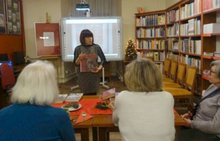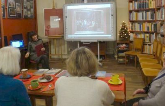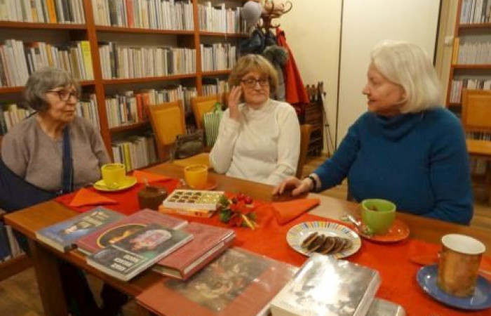 Prywatna kolekcja zdjęć i przygotowane książki związane tematycznie z odwiedzanymi miejscami pozwoliły nam wirtualnie podróżować Przy Kawie. Zwiedziłyśmy Zamek w Dzikowie, który od XVI wieku był w posiadaniu rodu Tarnowskich herbu Leliwa. Spacerowałyśmy po krakowskim Rynku, zajrzałyśmy do „Piwnicy pod Baranami” i Bazyliki Mariackiej, gdzie znajdują się polichromie Matejki, jedno z największych dzieł malarstwa monumentalnego.