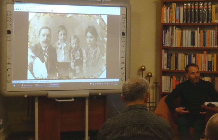 na tablicy multimedialnej wyświetlone zdjecie historycznej rodziny