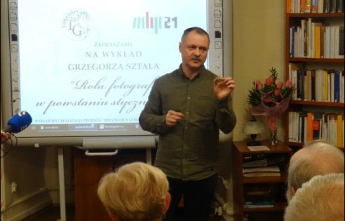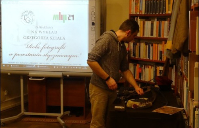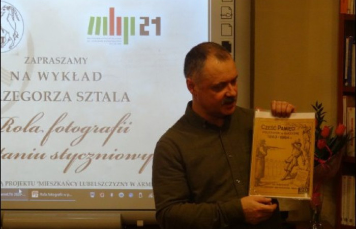 W tajniki ówczesnej fotografii i pierwszych fotomontaży wprowadził nas Pan Grzegorz Sztal – wielki pasjonat historii i wojskowości, kolekcjoner monet, zegarów, muszli i białej broni, współtwórca Prywatnego Muzeum Historycznego ZNAKI CZASU oraz członek Roztoczańskiej Konnej Straży Ochrony Przyrody im. 25 Pułku Ułanów Wielkopolskich a także inicjator wydania cennych niewielkich reprintów przedwojennych publikacji. Spotkanie 22 stycznia w Filii nr 21 MBP było pierwszym z tegorocznego cyklu wykładów organizowanych przez Zarząd Lubelskiego Towarzystwa Genealogicznego w ramach projektu „Mieszkańcy Lubelszczyzny w armii carskiej”.