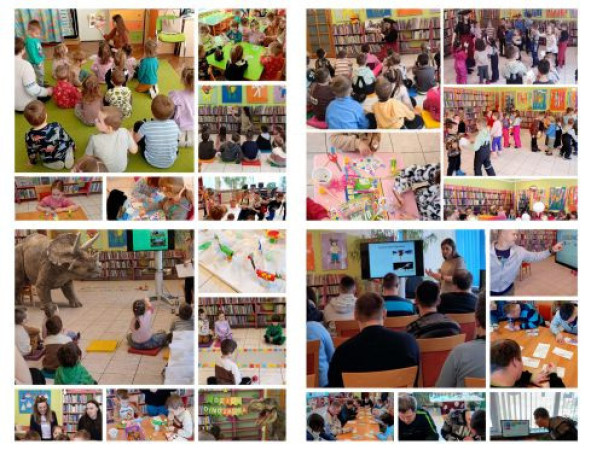 W ramach akcji „Zima w mieście” odbyła się lekcja biblioteczna oraz zabawa karnawałowa dla dzieci z grup „Biedronki” i „Stokrotki” z Przedszkola nr 46 w Lublinie, a także dla podopiecznych Centrum Aktywności Środowiskowej w Lublinie. Spotkanie rozpoczęliśmy od zapoznania się z książką „Pętelkowy bal choinkowy”. Zorganizowano również lekcję biblioteczną i zabawy pod hasłem „Zimowa Dinokraina” dla dzieci z grupy „Żuczki” z Przedszkola z Oddziałami Integracyjnymi nr 36 „Tęczowa Łąka” w Lublinie. W trakcie zajęć korzystaliśmy z książki „Franklin na wycieczce” oraz innych książek o dinozaurach dostępnych w naszej bibliotece.
