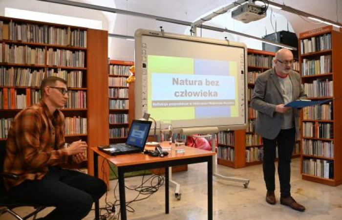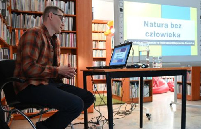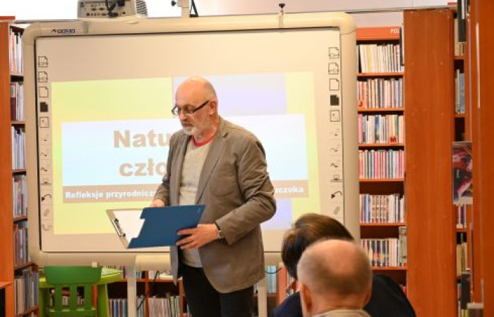 23 kwietnia 2025 w Filii nr 2 Miejskiej Biblioteki Publicznej wystąpił dr Przemysław Kaliszuk z wykładem pt. „Natura bez człowieka. Refleksje przyrodnicze w twórczości Wojciecha Kuczoka”. Po zapoznaniu uczestników spotkania z publikacjami związanymi z tematem, poddał głębokiej refleksji rolę i sens człowieka w odkrywaniu natury.
