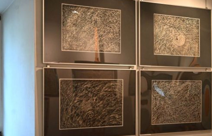 Całość uzupełniają wydruki obrazów, których oryginały - jak zdradziła autorka - “wyruszyły w świat”. “Pejzaż”, “Zamyślenie” oraz praca z cyklu “Jesienne barwy” przełamują monochromatyczną całość, wnosząc dodatkowe, jaśniejsze kolory.