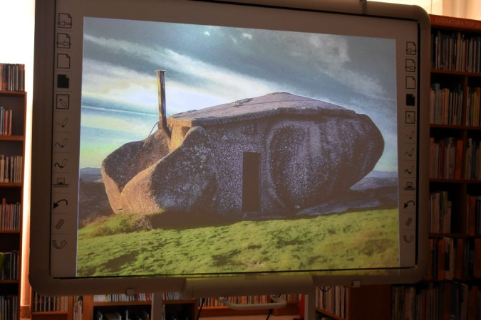 Jednym z wymienionych przykładów był Fallingwater, czyli dom nad wodospadem, zaprojektowany przez Franka Lloyda Wrighta w latach 30-tych XX wieku. Jego niezwykła lokalizacja i wyjątkowa, wpasowana w naturę architektura spowodowały, że budynek ten stał się najbardziej rozpoznawalnym prywatnym domem na świecie. Kolejnym przykładem był porównywany do jaskiń tzw. "Dom Flinstonów" na podłożu skalistym, posiadający organiczne kształty. Wyglądający na prehistoryczny lub co najmniej średniowieczny Casa do Penedo (dosłownie dom z kamienia) powstał jako wiejski domek wypoczynkowy w 1974 roku. Został zbudowany z lokalnych materiałów, głównie kamienia. Skonstruowano go w oparciu o cztery głazy przeniesione z górskiego zbocza, na którym stanął. Właściciele byli bardzo zadowoleni z nietypowego mieszkania, jednak do czasu. Ciekawscy podróżni, przybywający aby zobaczyć niesamowitą budowlę, stali się zbyt uciążliwi i mieszkańcy postanowili się wyprowadzić. Duża popularność Casa do Penedo spowodowała kilka włamań. Obecnie domek chroniony jest przez kuloodporne okna i stalowe drzwi. W trakcie wykładu zostały omówione jeszcze inne przykłady ekologicznej architektury współczesnej: dwie wieże w Mediolanie oraz ekologiczne założenia słynnego bardziej z pandemii chińskiego miasta Wuhan.