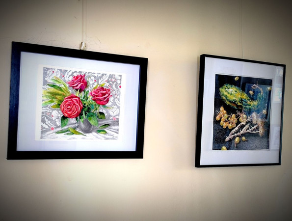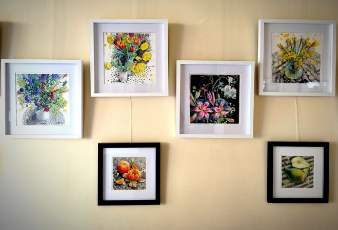 Wraz z nadejściem wiosny, gdy przyroda budzi się do życia, w naszej bibliotece można podziwiać wyjątkową wystawę prac ukraińskiej artystki, Svitlany Medvedievej. Jej dzieła, wykonane ołówkiem i akwarelą, ukazują kwiaty i owoce – detale codzienności, które w jej interpretacji nabierają niezwykłej subtelności i głębi.