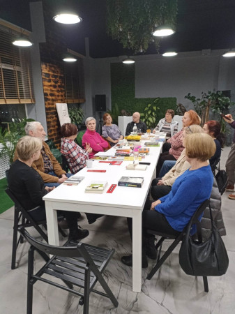 Pani Ewa opowiedziała nam o sztuce tworzenia a także przeczytała kilka swoich utworów. Wszyscy uczestnicy podzielili się swoimi odczuciami na temat przeczytanych przez siebie książek. Serdecznie dziękujemy za przybycie i aktywny udział. Następne spotkanie 26.01.2023. Tematem będą Rozważania u progu Nowego Roku na podstawie twórczości: Olgi Tokarczuk, Yuval Noah Harari, Jakuba Małeckiego, Tomasza Stawiszyńskiego oraz Rafała Hetmana. Serdecznie zapraszamy.