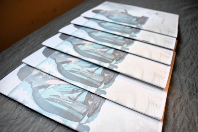 Katalogi grupy Impuls Art wyeksponowane na stoliku