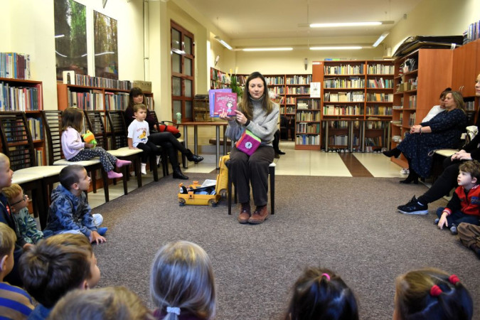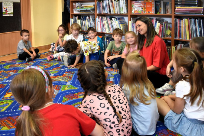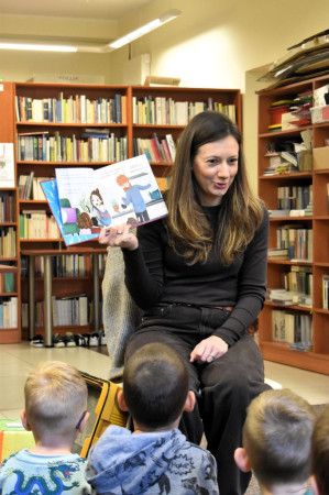 Joanna Olejarczyk czyta dzieciom fragmenty kolejnej swojej książki