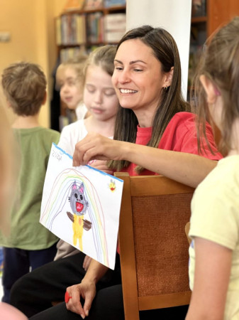 Autorka z ogromną swobodą i ciepłem poprowadziła spotkanie, budując atmosferę bliskości i zrozumienia. Warsztat pokazał, że literatura dla najmłodszych może być nie tylko zabawą, lecz także okazją do rozmów o tym, co ważne w codziennym życiu dziecka.