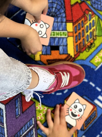Podczas warsztatów dzieci rozmawiały z autorką o emocjach - zarówno tych przyjemnych, jak i trudniejszych do nazwania. Książka O, co czuję! stała się inspiracją do wspólnego odkrywania, jak rozpoznawać i opisywać własne uczucia. Uczestnicy układali puzzle z buźkami przedstawiającymi różne emocje, starając się odgadnąć, jakie uczucie wyraża dana twarz. W części plastycznej dzieci rysowały koty z rozmaitymi minami, a następnie, na podstawie swoich ilustracji, opowiadały historię dnia kota pełnego emocjonalnych przygód.