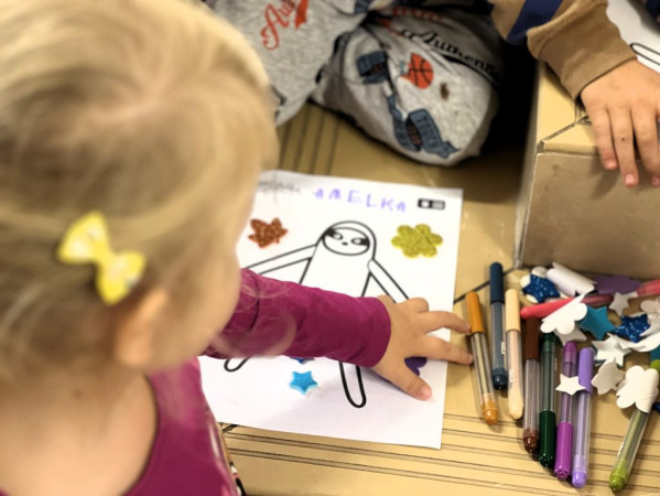 Na zakończenie uczestnicy mieli okazję wykazać się kreatywnością – ich zadaniem było pomalowanie ubrania i postaci Kazika, który mógłby zainspirować pisarkę do stworzenia ilustracji w kolejnej książce. Powstały barwne, pełne emocji prace, w których każde dziecko mogło wyrazić siebie i swoje uczucia.