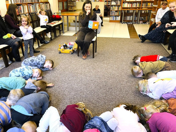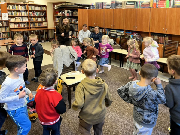 Powitanie małych gości i prowadzącego zajęcia w bibliotece