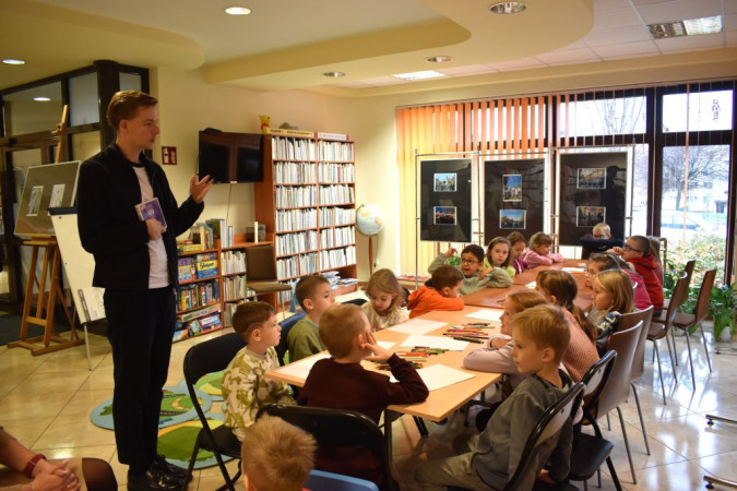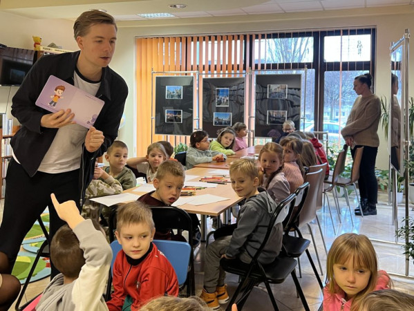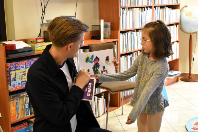 Podczas warsztatu Artur Gębka w niezwykle przystępny i ciepły sposób pokazał dzieciom, że emocje są ważne, a ich zrozumienia może nauczyć się każdy. Uczestnicy zastanawiali się, czym jest strach i jak można sobie z nim radzić. Prowadzący, wykorzystując historię o Tadziu, wciągnął dzieci w rozmowę, zabawy ruchowe oraz kreatywne działania plastyczne. Dzieci rysowały swój własny strach i nadawały mu wymyślone imiona, dzięki czemu mogły go lepiej zrozumieć i oswoić. Spotkanie wspierało rozwój empatii, samoświadomości i umiejętności społecznych u dzieci, a wszystko przebiegało w miłej i bezpiecznej atmosferze.
