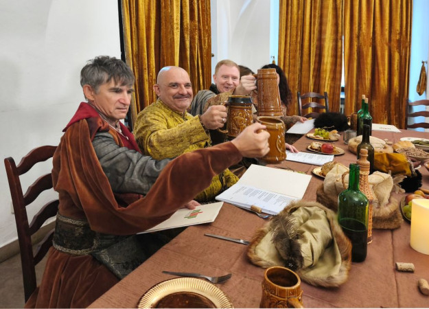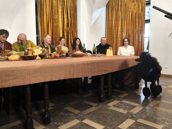 Zaprosiliśmy również do suto zastawionego biesiadnego stołu, gdzie - jak to przy biesiadzie bywa - nie zabrakło okazji do rozmów, przechwałek, konfliktów, ale i wzruszeń czy momentów zadumy. Wśród gości dumnie przechadzają się pudle królewskie - wierni towarzysze szlachty na polskich dworach. W sielankowy nastrój wprowadzają inscenizacje do "Pieśni o Sobótce"... Z kolei wprawne oko miłośnika twórczości Kochanowskiego i samego Lublina z pewnością wychwyci w filmie nawiązania do związków poety z naszym regionem.