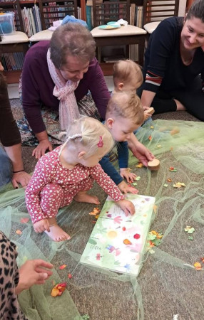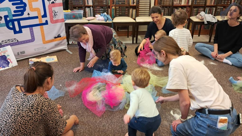 W Filii nr 35 MBP odbyły się warsztaty w ramach projektu Instytutu Książki "Mała książka w drodze". Z ramienia Instytutu zajęcia poprowadziła Lucyna Brzezińska-Eluszkiewicz - filolożka polska, animatorka kultury, biblioterapeutka, terapeutka SI, laureatka w konkursie Książka Roku 2021 Polskiej Sekcji IBBY, w kategorii Upowszechnianie Czytelnictwa. Swoją autorską metodę sensorycznego czytania zaprezentowała na bibliotecznym spotkaniu inspirowanym książką Doroty Gellner "Tyci, tyci" mającym charakter sensoryczny, bliskościowy, czuły, na którym nie brakowało muzyki, zapachów, dotyku.