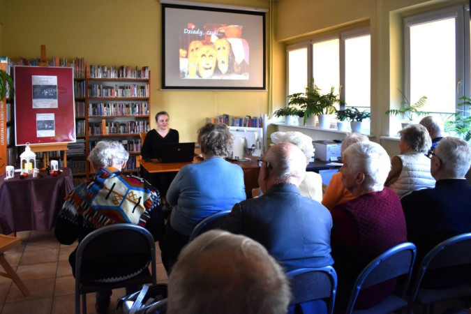 Czym był obrzęd dziadów dla naszych przodków? Jakie tradycje związane z tym świętem my do dziś pielęgnujemy? Skąd wziął się w naszej kulturze zwyczaj ustawiania pustego talerza na świątecznym stole? Co w rzeczywistości kryło się pod pojęciami „licho nie śpi”, „baba Jędza” czy „zbiesiony” używanymi obecnie w języku potocznym? Odpowiedzi na te pytania poznali uczestnicy spotkania zorganizowanego w Filii nr 11 z okazji Weekendu Seniora z Kulturą.