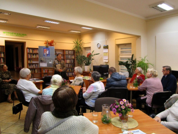 W ramach Weekendu Seniora z Kulturą 2025 gościliśmy w naszej filii panią Irenę Piątek-społecznego animatora kultury, wielką miłośniczkę literatury, która wygłosiła prelekcję pt."O życiu i twórczości Stefana Żeromskiego w setną rocznicę śmierci autora "Przedwiośnia". Uczestnicy z dużym zainteresowaniem wysłuchali wykładu, dowiadując się nieznanych faktów z życia pisarza oraz jak ogromny wpływ miała jego twórczość na literaturę. Pani Irenie serdecznie dziękujemy, mając nadzieję na dalszą współpracę.
