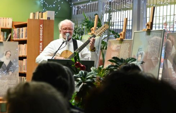 Na równo godzinę – jak za dotknięciem czarodziejskiej różdżki – sala naszej wypożyczalni zamieniła się w salę koncertową, w której uczestnicy mogli wysłuchać zarówno tradycyjnych, znanych wszystkim kolęd, jak i mniej znanych pastorałek, które od lat towarzyszą Świętom Bożego Narodzenia. Występ przygotowany przez lubelskiego barda Ryszarda Borkowskiego i jego żonę Klarę spotkał się z niezwykle ciepłym odbiorem publiczności.